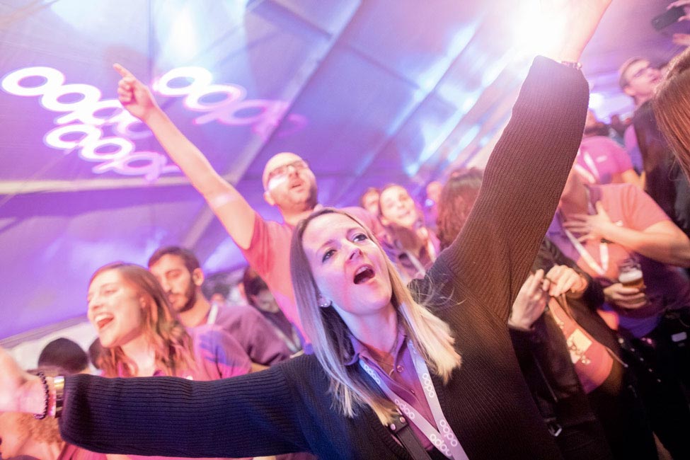 sessões de esporte, eventos de desenvolvimento de equipe, happy hour mensal, e muito mais
